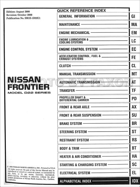Read 2001 nissan frontier workshop manual Reader BookBoon